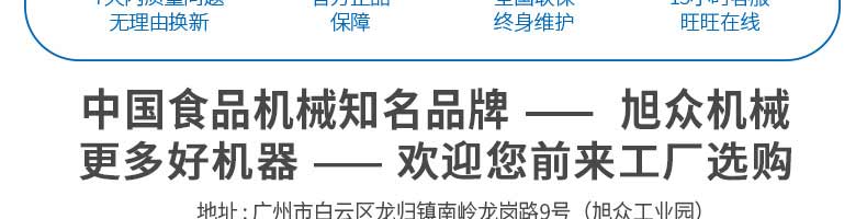 廣州旭眾食品機(jī)械有限公司是一家集科研開發(fā),生產(chǎn)設(shè)計(jì),營(yíng)銷服務(wù)為一體的現(xiàn)代化生產(chǎn)企業(yè)。現(xiàn)代化生產(chǎn)車間,精湛制造技術(shù),所產(chǎn)機(jī)械歷經(jīng)市場(chǎng)重重考驗(yàn),不斷贏得海內(nèi)外客戶的贊譽(yù)。