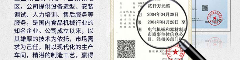 廣州旭眾食品機械有限公司是一家集科研開發(fā),生產設計,營銷服務為一體的現代化生產企業(yè)。現代化生產車間,精湛制造技術,所產機械歷經市場重重考驗,不斷贏得海內外客戶的贊譽。