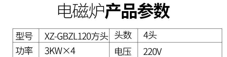 XZ-TBZL120方頭臺式電磁爐,火力十足美味無限,商用臺式電磁爐:3500W功率、一爐一控、德國進口芯片。快餐外賣搶著買,一爐百烹快速出餐。煎炒燜煮煲等各樣花式,樣樣行。