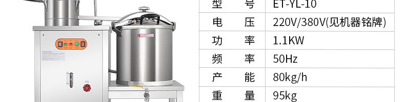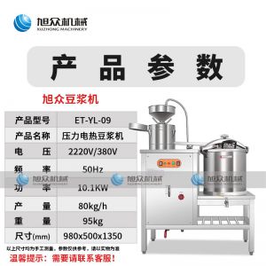 ET-YL-09壓力電熱豆漿機,多功能商用豆漿機,細、香、濃。我們珍惜每一顆大豆,讓每顆大豆進發營養價值。旭眾豆漿機做您的招牌豆漿打磨細膩、口感香濃、回味無窮。