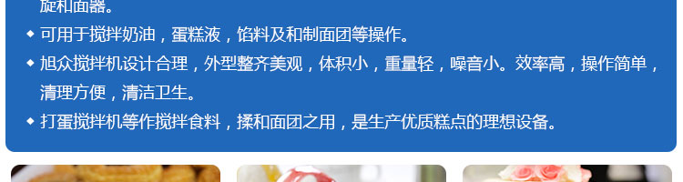 SZM10、15、20、25、30攪拌機系列,可用于攪拌奶油、蛋糕液、餡料及和制面團等操作。打蛋攪拌機等作攪拌食料、揉和面團之用,是生產優質糕點的理想設備,適用于酒店、飯店、學校部門、面包屋以及食品廠家。