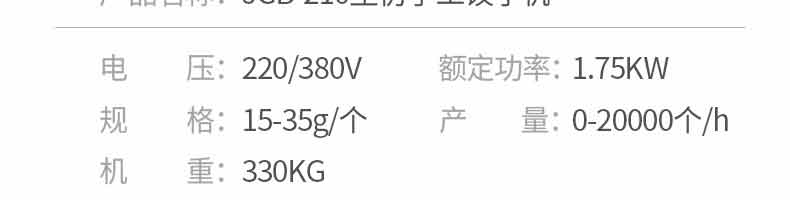 JGB-210型仿手工餃子機,本機采用自動壓面皮包餃子的新工藝技術,本機可生產速凍餃子等,能生產各種肉餡、肉菜混合餡、全菜餡及其他種餡的餃子,適用于餃子館、食品生產廠家、賓館、飯店、餐廳、團體食堂、學校、部隊。免費上門安裝調試,贈送面點工藝