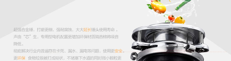 ACLQ56-廚房垃圾處理器,該機器是靠內部結構、零件組合達到處理垃圾的效果,通過碾、壓、擠、磨等系統的處理,在十幾秒內安全將食物垃圾處理成小于3毫米的顆粒,隨著水流排入下水道,使用十分安全。