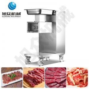XZ-QE切肉機,是一款可方便移動的肉類加工設備,配置單層刀具一次性切肉片,二次切肉絲,再切成粒。底座設置有滑輪,移動靈活,輕松便捷;刀具采取外置懸臂式設計,拆洗方便,衛生更有保障;配置多種刀具,可加工不同厚度的肉片,實現一機多用;機內裝有安全保護開頭,刀具外露時,機器自鎖不能啟動,以保安全;刀片用特殊不銹鋼材料制造,經久耐用;卸下的刀具,不用清洗直接放置在6攝氏度以下的冰箱里,刀具余肉不發臭。