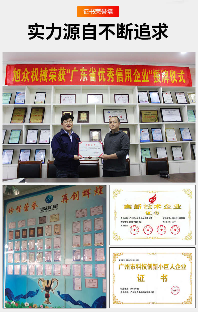 廣州旭眾食品機械有限公司是一家集科研開發,生產設計,營銷服務為一體的現代化生產企業。現代化生產車間,精湛制造技術,所產機械歷經市場重重考驗,不斷贏得海內外客戶的贊譽。