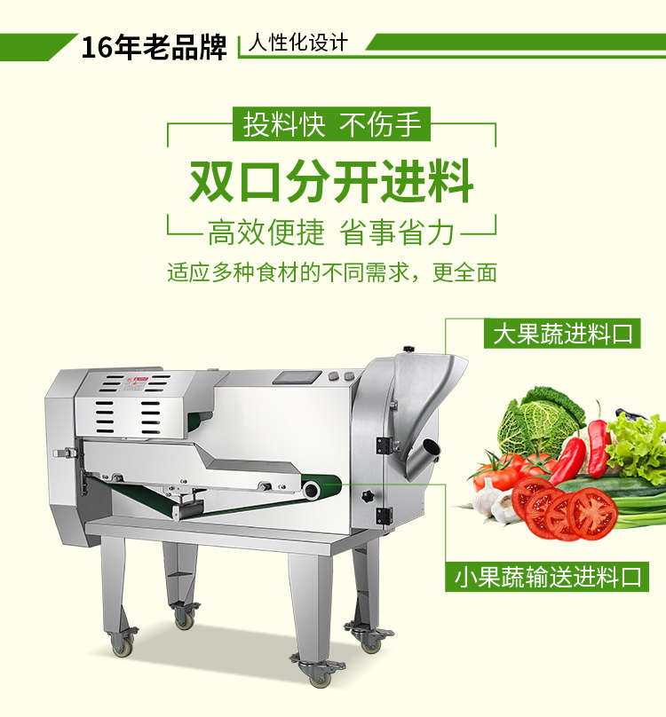 XZ-690A型多功能切菜機(jī),工作效率高,幫你省人工費(fèi)。1小時(shí)可切600kg-1600kg/h,1臺(tái)機(jī)器等于多名廚師同時(shí)為您工作。一機(jī)多用,可切瓜果、蔬菜、藥材,刀片可進(jìn)行更換,設(shè)計(jì)周到,結(jié)構(gòu)合理,簡(jiǎn)單輕松應(yīng)對(duì)。