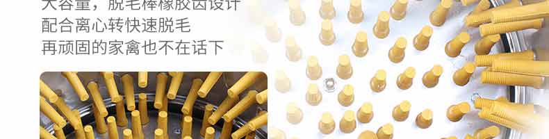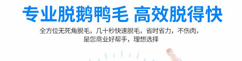鵝鴨型脫毛機,本機用于雞、鴨、鵝宰殺后的自動脫毛,還可用于脫姜皮、脫馬鈴薯皮、脫魚鱗等農產品。本機操作簡單,省力、省時間、工作效率相當于十多個人的手工勞動。