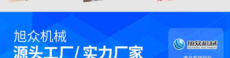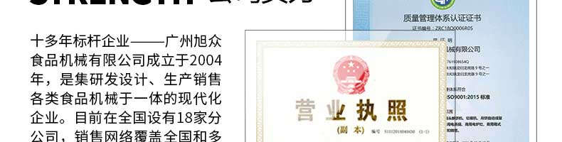 廣州旭眾食品機械有限公司是一家集科研開發(fā),生產設計,營銷服務為一體的現(xiàn)代化生產企業(yè)。現(xiàn)代化生產車間,精湛制造技術,所產機械歷經市場重重考驗,不斷贏得海內外客戶的贊譽。