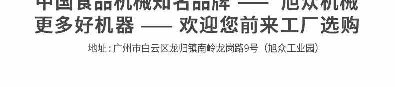 廣州旭眾食品機械有限公司是一家集科研開發,生產設計,營銷服務為一體的現代化生產企業。現代化生產車間,精湛制造技術,所產機械歷經市場重重考驗,不斷贏得海內外客戶的贊譽。