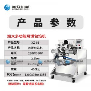 XZ-68月餅包餡機(jī),一次成型大小均勻,操作簡(jiǎn)單,可生產(chǎn)豆沙、五仁、蓮蓉等餡料的包餡類產(chǎn)品制品皮餡比例可調(diào),大小統(tǒng)